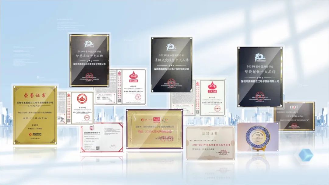 消防十大民族品牌、消防報警系統十大品牌、消防器材十大品牌、深圳企業500強……三江品牌載譽累累,深受社會各界的認可,已構建起覆蓋全球的行業影響力。產品與服務遍及歐盟、東南亞、中東、南美等50多個國家和地區,深度參與當地重大工程項目,并在全球權威展會中頻頻亮相,成為“中國智造”的典范代表,讓世界見證中國品牌的科技力量與責任擔當。